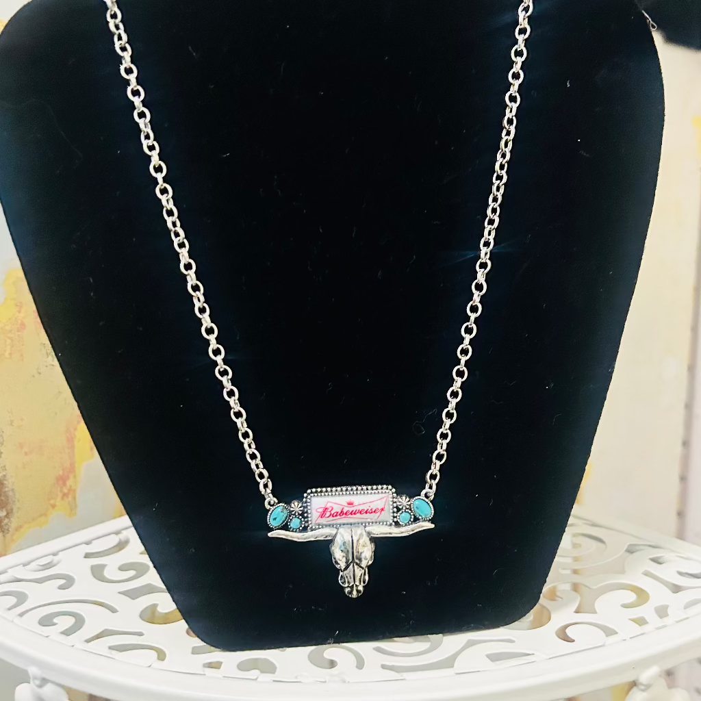 Effortlessly add a touch of western charm to any outfit with the Babewiser Necklace. Crafted with a statement-making bull skull pendant, this necklace is perfect for any fashion-forward individual looking to make a stylish statement. The rustic design is perfect for both casual and dressy occasions.