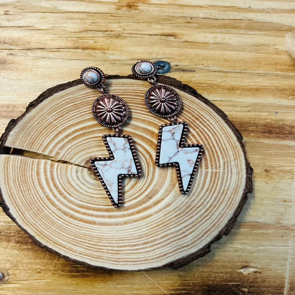 These Concho Lightning Bolt Earrings are a stylish and unique addition to any wardrobe. Made with precision and craftsmanship, they feature a stunning lightning bolt design that is sure to make a statement. With a modern touch and high-quality materials, these earrings are perfect for any occasion.
