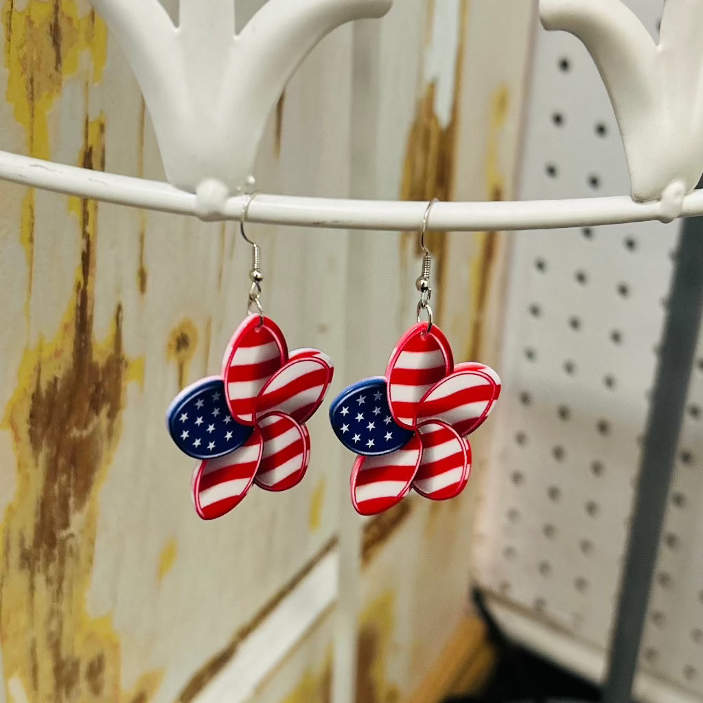Add a touch of patriotism to your outfit with our Flower Flag Earrings. Made in a beautiful flower shape, these earrings will show off your love for your country. Expertly crafted from high-quality materials, these earrings are lightweight and comfortable to wear. Perfect for any occasion, these earrings are a must-have for any fashion-forward individual.