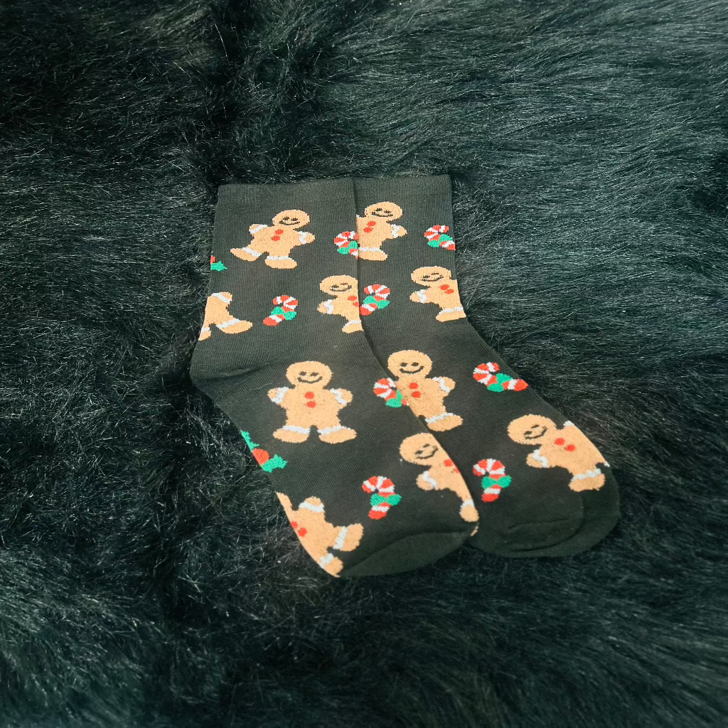 Introducing our Gingerbread Man Socks - perfect for adding a playful touch to your wardrobe this holiday season! Made with high-quality materials, these socks feature a festive gingerbread man design that is sure to bring a smile to your face. Stay comfortable and stylish with these unique, fun socks.