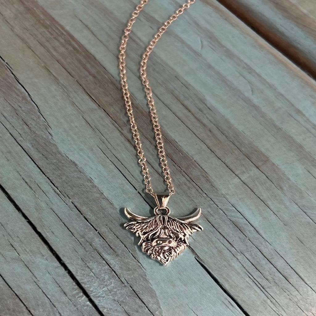 This elegant necklace features a pendant in the shape of a majestic highland cow. Made from high-quality materials, this necklace is perfect for anyone who admires these iconic animals. Add a touch of country charm to your wardrobe with this unique and beautiful necklace.