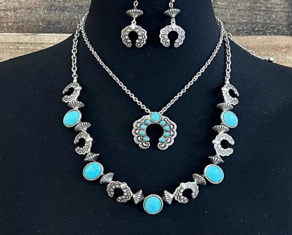 This Lynn Necklace set features a Squash Blossom Necklace that is perfect for adding a statement piece to your wardrobe. The intricate design and striking colors make it a show-stopping piece that will draw the attention of everyone in the room.