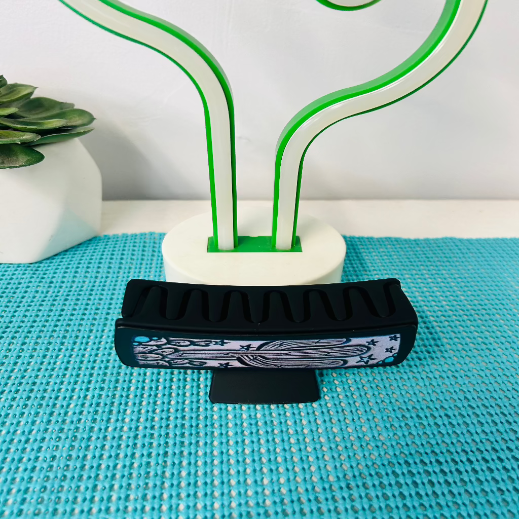 Step back in time with our Retro Cactus Hair Claw. Made with sturdy and durable materials, this hair claw is perfect for holding even the thickest hair in place. Its unique retro design with cactus motifs adds a touch of fun to your everyday hairstyle.